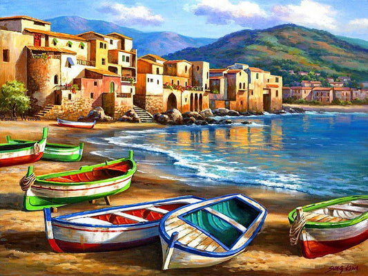 ערכה להכנת תמונת קריסטלים 20X30 סמ - סירות על החוף