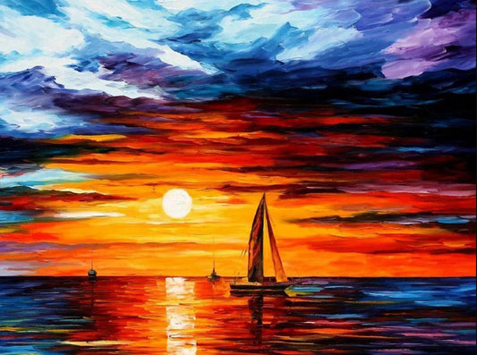 ערכה להכנת תמונת קריסטלים 20X30 סמ - סירת מפרש בשקיעה