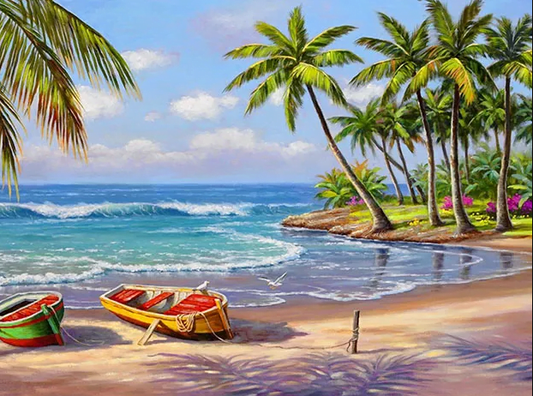 ערכה להכנת תמונת קריסטלים 20X30 סמ - חוף דקלים וסירות