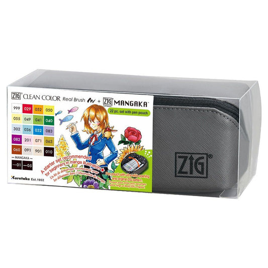 קלמר 22 פריטים: טושי מכחול ועטים גרפיים Zig Clean Color Real Brush + Mangaka