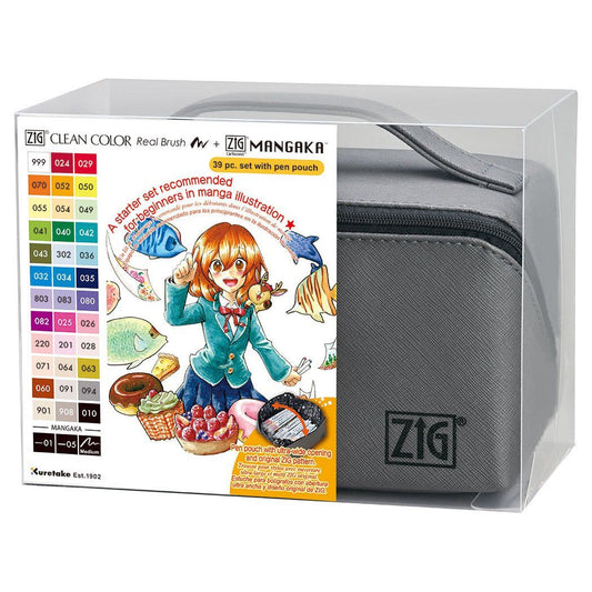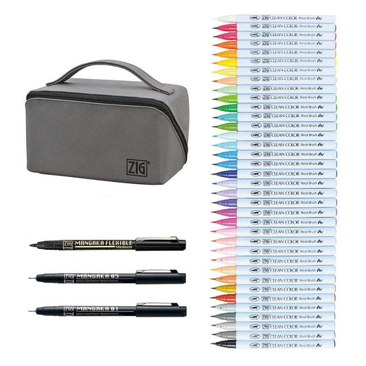 קלמר 40 פריטים: טושי מכחול ועטים גרפיים Zig Clean Color Real Brush + Mangaka