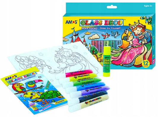 צבעי חלון סט 12 גוונים Amos Glass Deco