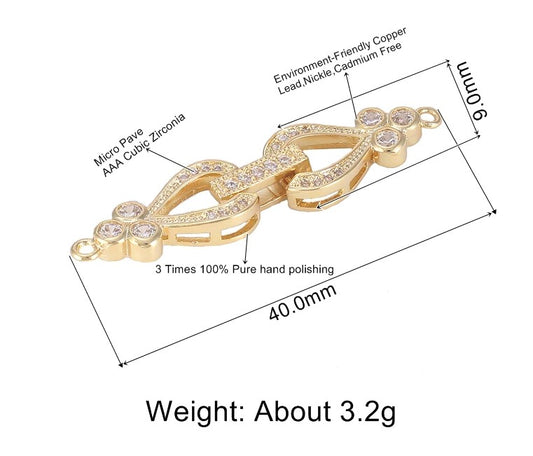סוגר T לב נפוח משובץ זירקונים - פליז ציפוי GOLD PLATED