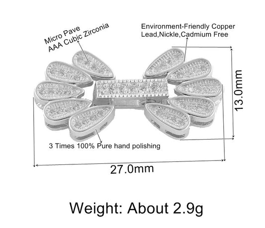 סוגר משובץ זירקונים פרח 5 טיפות מוכסף