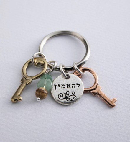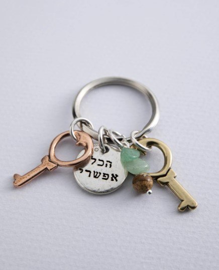 מחזיק מפתחות קטן ושיקי, בשילוב ציפווים של פליז, נחושת וכסף טהור. המחזיק מורכב משני מפתחות קטנים, מתליון שעליו חרוטות המילים "להאמין / הכל אפשרי" ומאבני חן חצי יקרות, שמעניקות לו נופך של קסם ויוקרתיות. מתנה קטנה ומושלמת מבית DANON לעצמך או לאנשים האהובים עליך.
