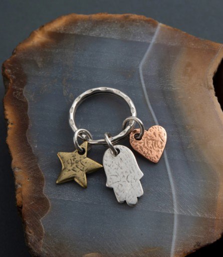 מחזיק מפתחות קטן ומקסים, המורכב משלושה אלמנטים - חמסה, לב וכוכב,