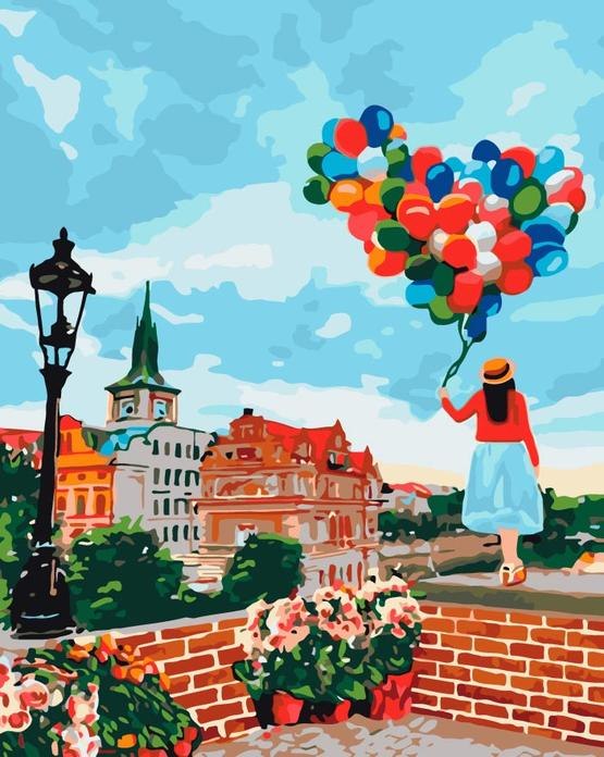 צביעה לפי מספרים - נערת בלונים על גדר