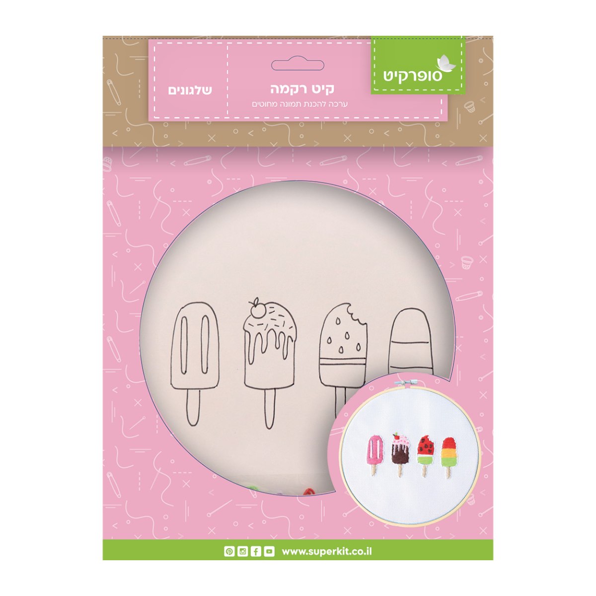 קיט ריקמה בקוטר 20 ס"מ כולל: בד מודפס, חוטים, חישוק ריקמה ומחט לריקמה.