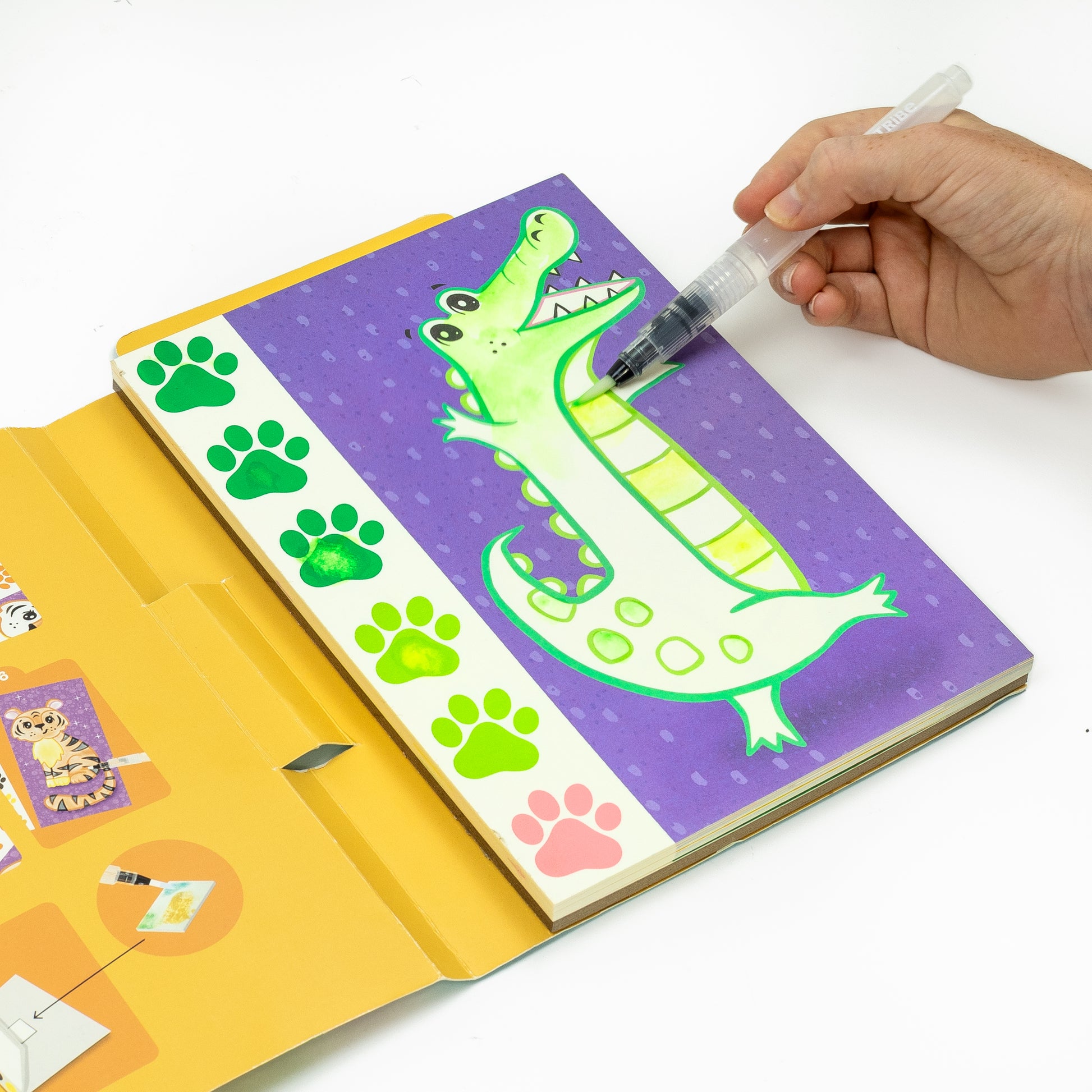 ערכת Paint-a-Picture מבית Tiger Tribe פותחת שער לעולם פראי וצבעוני של חיות מרהיבות מכל הסוגים – עם פעילות יצירה שמהר מאוד הופכת להתמכרות אמנותית. בתוך הקופסה המעוצבת תמצאו 16 דפי צביעה מאוירים, שכל אחד מהם כולל פלטת צבעי מים מובנית – פשוט מוסיפים מים, מציירים ומגלים את הקסם שבצביעה.