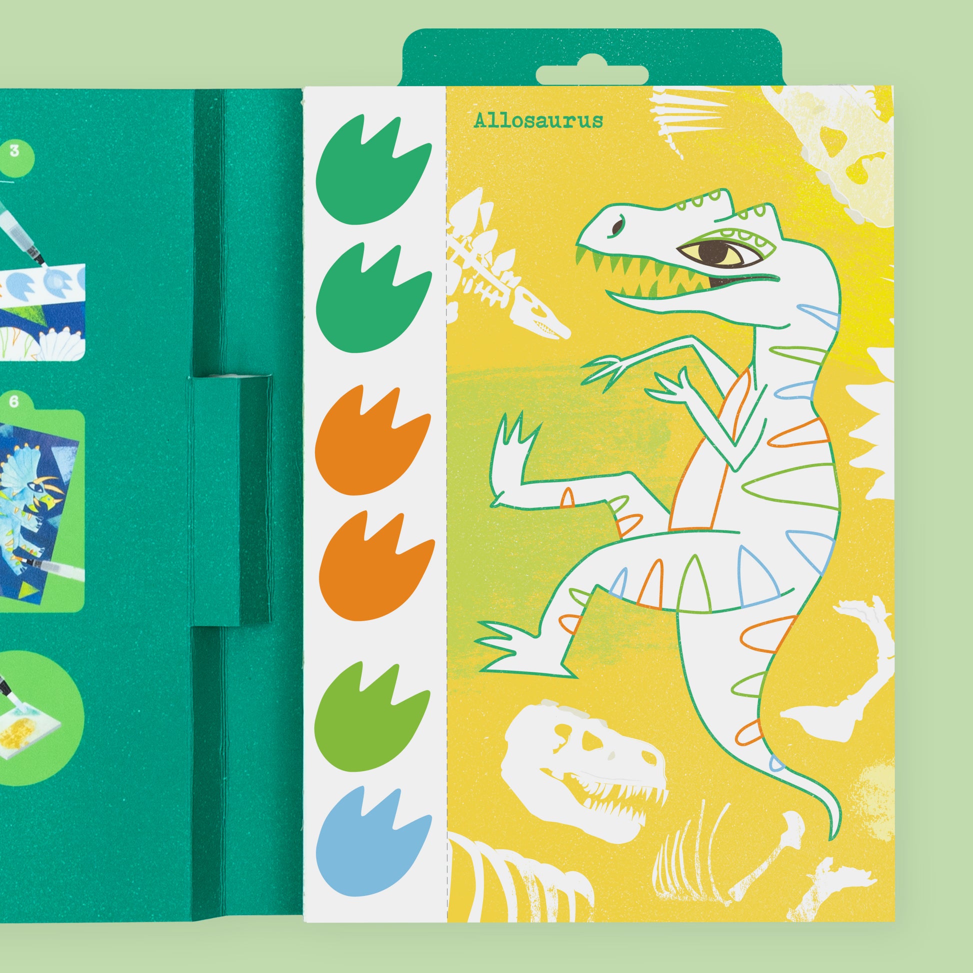ערכת Paint-a-Picture מבית Tiger Tribe פותחת שער לעולם קדום, מרתק וצבעוני של הדינוזאורים מרשימים ממינים שונים – עם פעילות יצירה שמהר מאוד הופכת להתמכרות אמנותית. בתוך הקופסה המעוצבת תמצאו 16 דפי צביעה מאוירים, שכל אחד מהם כולל פלטת צבעי מים מובנית – פשוט מוסיפים מים, מציירים ומגלים את הקסם שבצביעה.