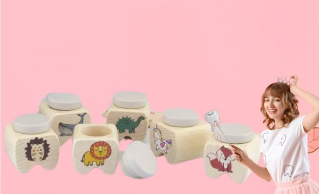 הקופסה מעוצבת בעיטורי חיות עדינים וצבעוניים, והופכת את חוויית נשירת השיניים למשהו נעים ומשמח. בכל פעם שנופלת שן, יש לה מקום מסודר ובטוח זיכרון קטן שנשמר לשנים קדימה.