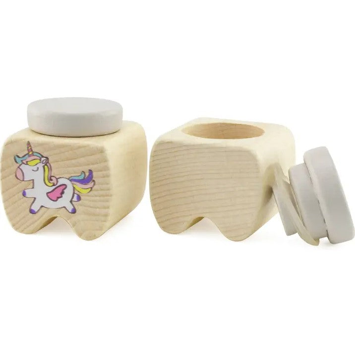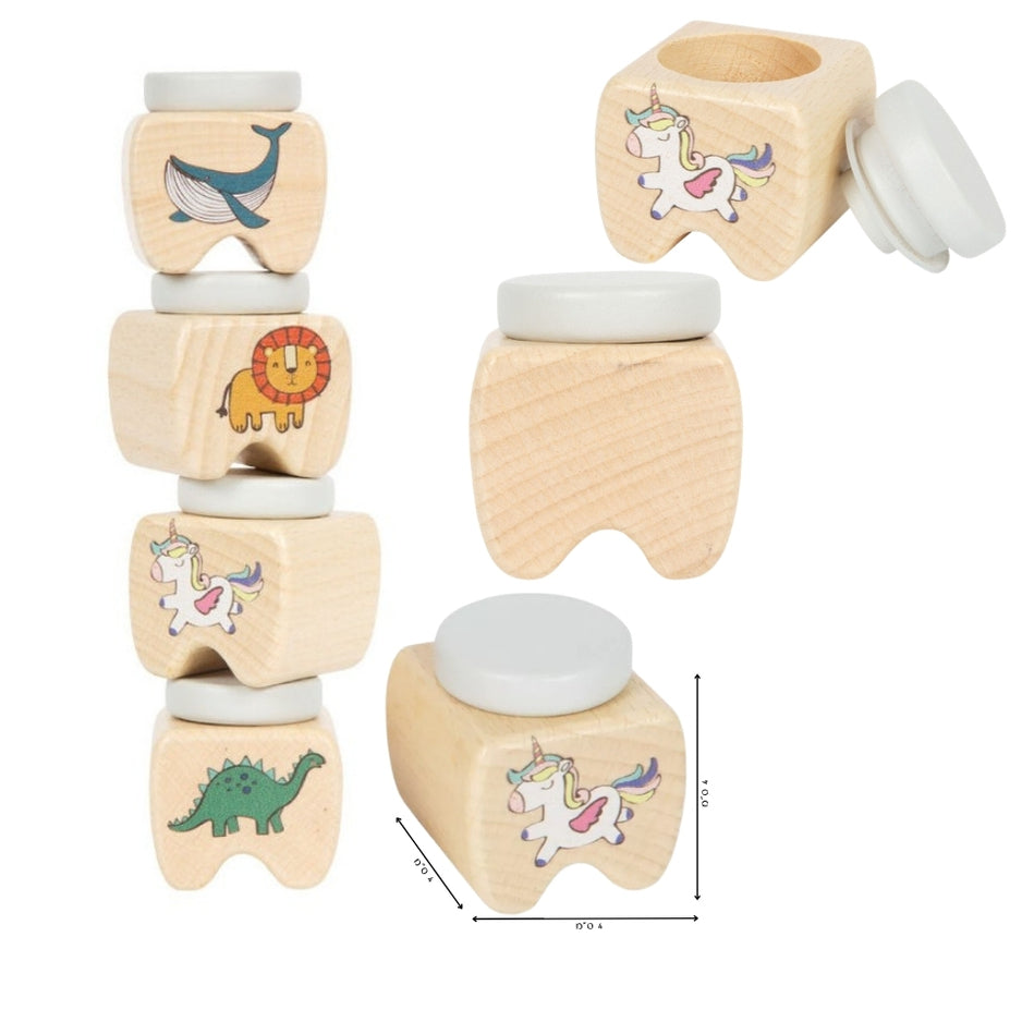 קופסת שיני חלב מעץ, מזכרת קטנה ומתוקה ששומרת רגעים גדולים מהילדות. עיצוב עדין עם איורי חיות, מכסה עם אטימה נוחה וגודל קומפקטי שמתאים בדיוק לידיים קטנות.