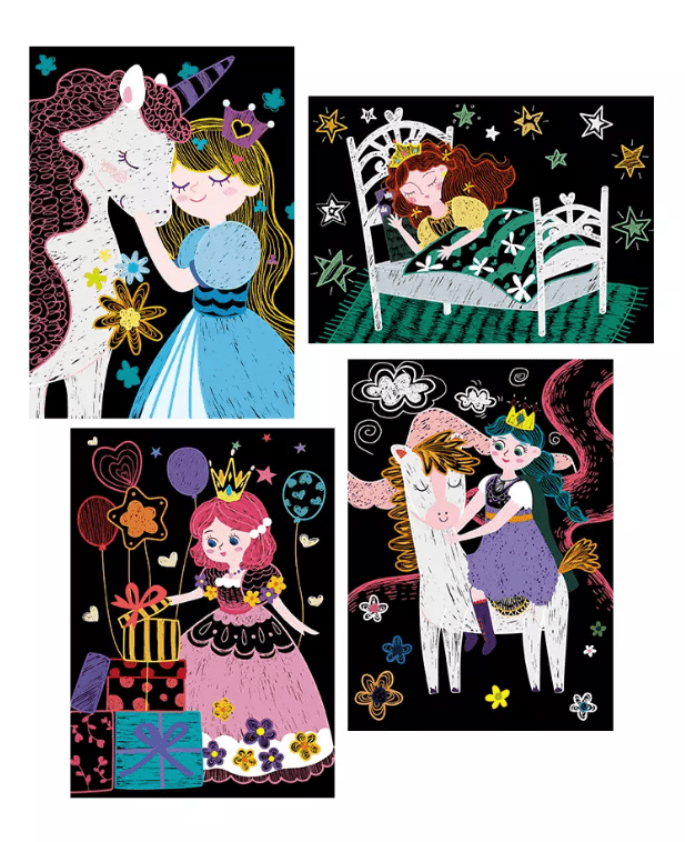 בעזרת המקל המצורף חושפים את הצבעים המרהיבים בגירוד, ויוצרים תמונה יפיפייה. פעילות יצירתית קלה ומהנה, חווית הצלחה מובטחת עם הנאה והמון כייף.