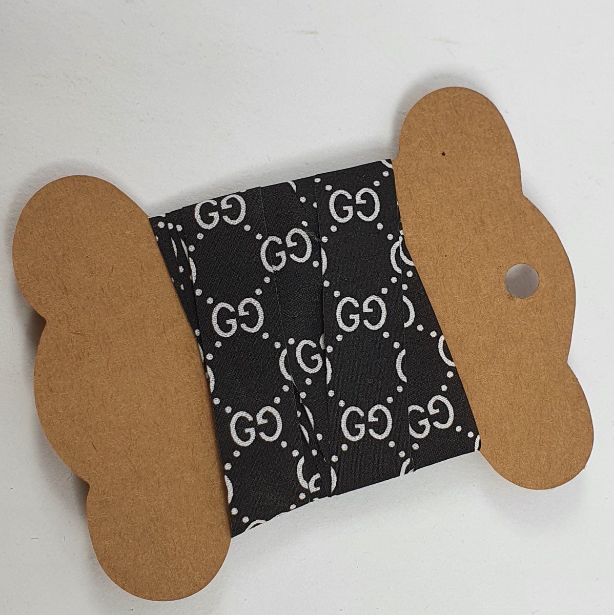 סרט בד כותנה שחור מודפס בדוגמת המותג גוצ'י.