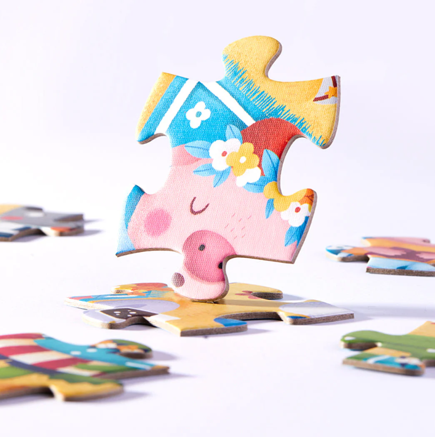 הפאזלים מאוירים בצבעוניות מרהיבה ומציגים בעלי חיים מכל העולם, מה שהופך כל הרכבה גם ללמידה על טבע, חיות ובתי גידול שונים. תוך כדי משחק, הילדים מפתחים חשיבה לוגית, הבנה מרחבית, פתרון בעיות, תיאום עין-יד ויכולות מוטוריות עדינות – והכול באווירה של הצלחה והנאה.