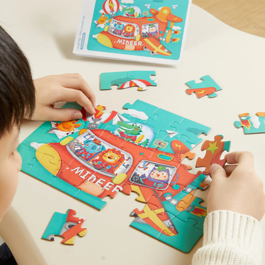 מארז הפאזלים 4 ב-1 של Mideer הוא בדיוק מה שצריך כדי לשלב כיף עם למידה – ולתת לילדים חוויית הרכבה שמתחילה בקל ומתקדמת בהדרגה. הסט כולל ארבעה פאזלים ברמות קושי עולות: 12, 16, 24 ו-35 חלקים – כך שכל הצלחה קטנה מובילה לאתגר הבא, עם הרבה מוטיבציה בדרך.