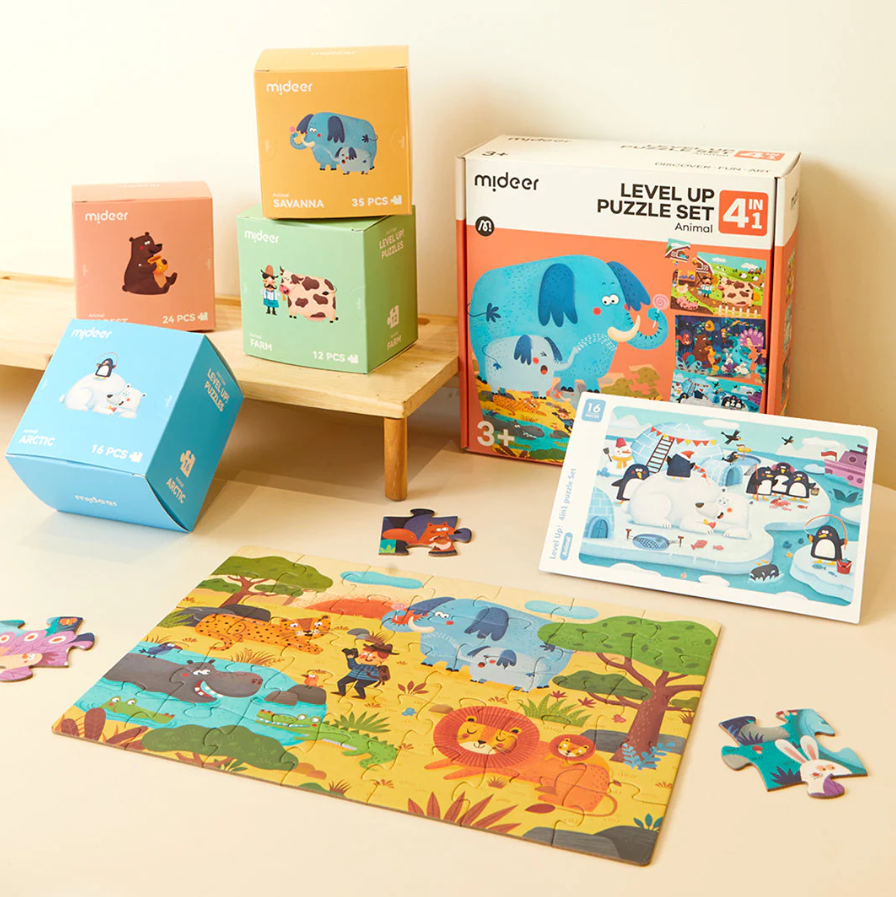 מארז פאזלים 4 ב-1: LEVEL UP חיות MIDEER