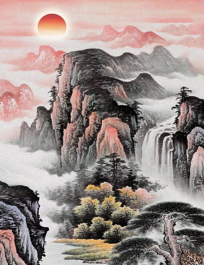 ערכה להכנת תמונת קריסטלים 40X50 - הר ומפל בשקיעה