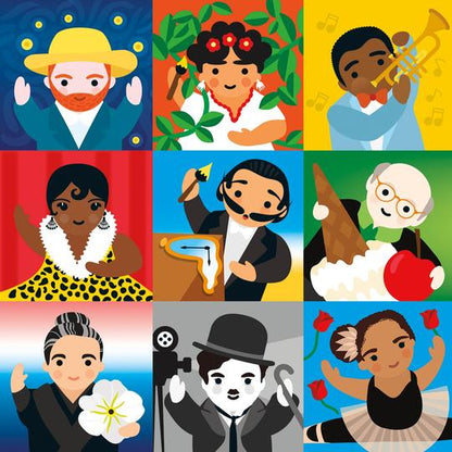 פאזל 500 חלקים בנושא אמנים צעירים, כולל דיוקנאות מאוירים של אמנים מעוררי השראה שהשפיעו על האנושות באופן היסטורי, בתחומים שונים: פיסול, מוזיקה, מיצג או ציור. הפאזל כולל דיוקנאות של סלבאדור דאלי, לואי ארמסטרונג, מיסטי קופלנד, ג'ורג'יה אוקיף, פרידה קאלו ועוד
