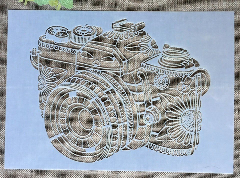 סטנסיל בגודל A4, בדוגמת מצלמה מנדלה.