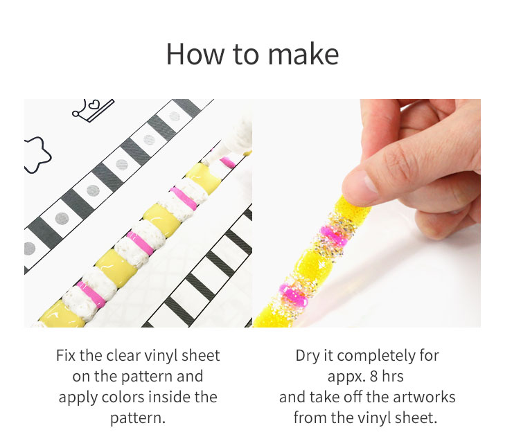 בפעילות מהנה במיוחד, הילדים ממלאים צמידים וטבעות ריקים בצבעים מתערבבים, יוצרים קישוטים עדינים ומדליקים באמצעות דפי ויניל מעוצבים. לאחר ייבוש מתעצבים הצבעים לגוונים שקופים ונוצצים, והתוצאה – תכשיטים ייחודיים שאפשר לענוד בגאווה או לחלוק עם חברים ומשפחה.