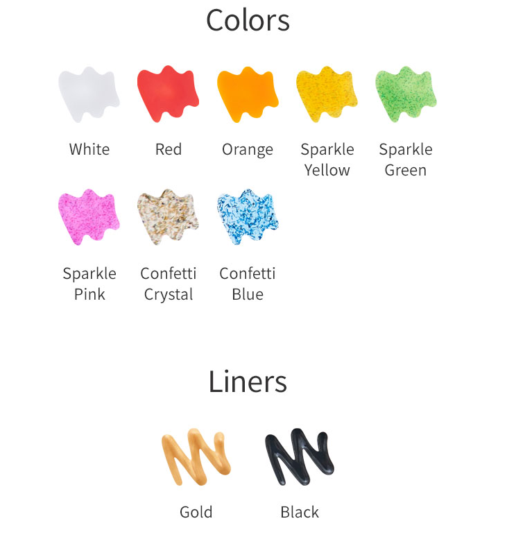 • 10 מבחנות צבע בגוונים עליזים, שניתנים לערבוב