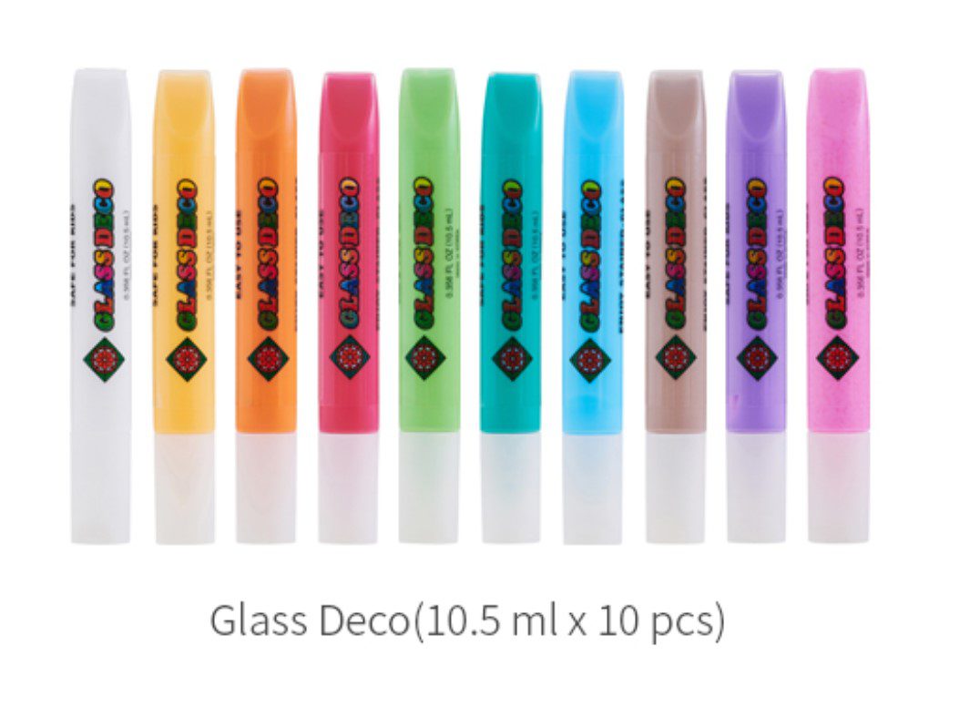 ערכת צבעי חלון עם 12 צורות פלסטיק שקועות אותן ממלאים בצבעים מרהיבים שהופכים שקופים עם ההתייבשות.