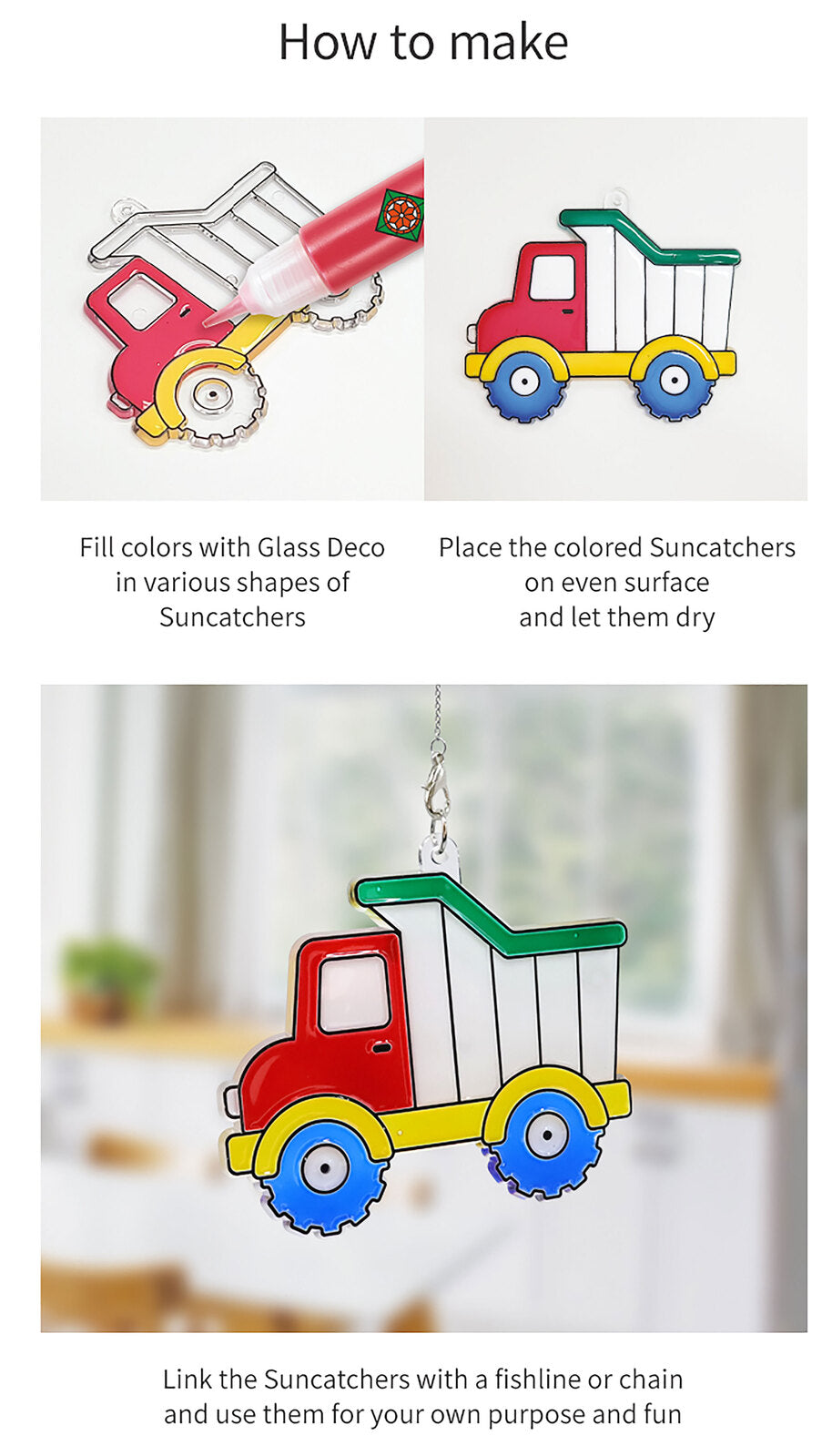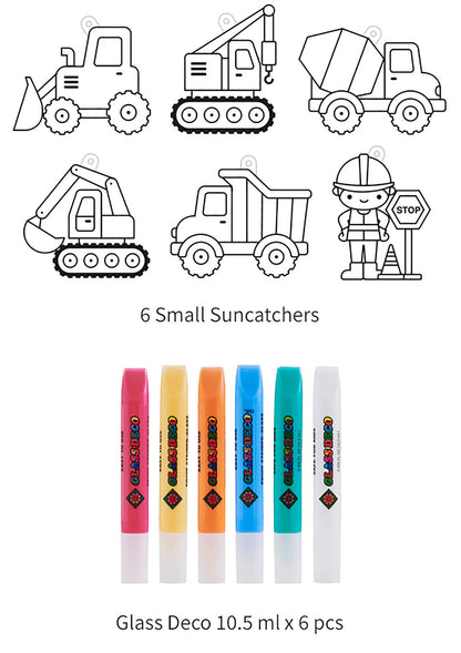 ערכת צבעי חלון עם צורות פלסטיק שקועות אותן ממלאים בצבעים מרהיבים שהופכים שקופים עם ההתייבשות.