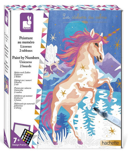 צביעה לפי מספרים בצבעי מים – חדי קרן Janod