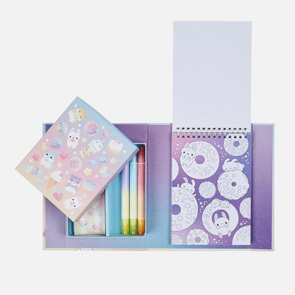 פינוקים מתוקים, בתי קפה חמודים ודמויות קוואי קסומות – הילדים נכנסים לעולם של צביעה רכה ויצירתית עם ערכת הצביעה הפסטלית מבית טייגר טרייב. בערכה הזו תמצאו 36 דפי צביעה מאוירים בקפידה, שלושה טושים דו-צדדיים עם שישה גווני פסטל עדינים, וחמישה דפי מדבקות מהממים שישדרגו כל ציור.